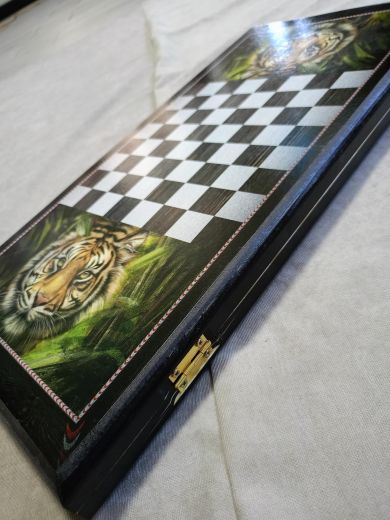 Нарды цветные, средние "Тигр" Размер:: 50х25х4см. Материал:: лиственница