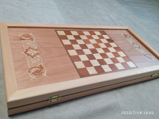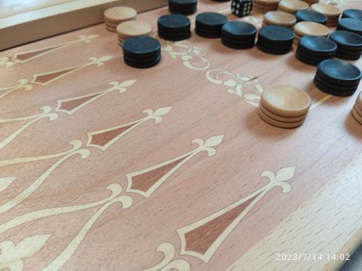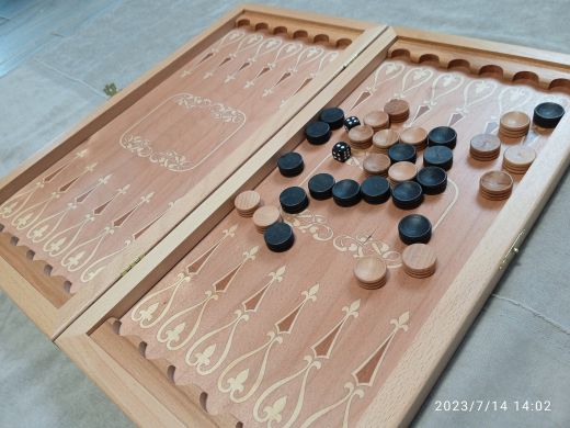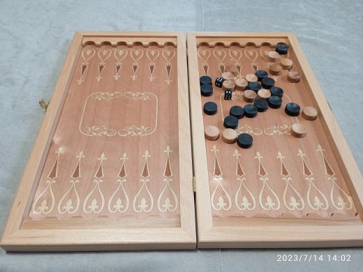 Прямая износостойкая печать по дереву. Данные нарды износостойкие, а деревянная рамка защищает нарды от появления царапин. При производстве используются только безопасные и качественные материалы! Итальянский лак защищает от мелких царапин и истирания. Немецкая фурнитура прослужит долгие годы, а не отвалиться в первый же день. Дерево твердых пород (бук) предотвратит появление вмятин, в отличии от мягких пород древесины (сосна или ель). Выбирая более дешевые аналоги нард, обратите внимание на печать – скорее всего, это будет принт на бумаге, приклеенный на нарды, даже без покрытия защитным лаком. Такие дешевые нарды после нескольких использований непременно поцарапаются и придут в непотребный вид. А эти нарды надежно защищены! В комплект входят фишки и зары. Подарочные недорогие нарды - красивый, добротный подарок на любой повод для мужа, папы, друга или начальника.