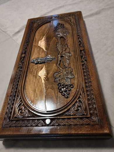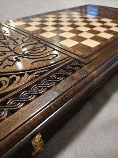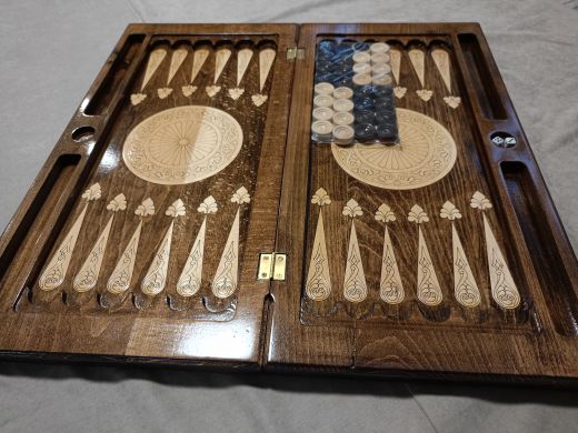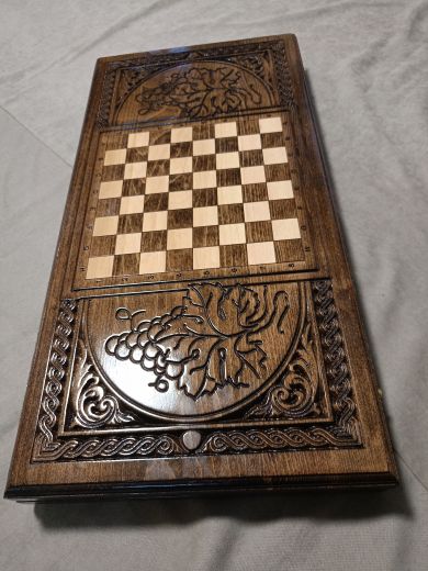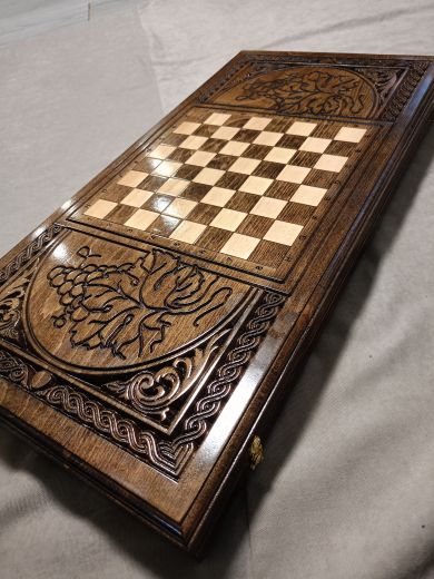 Нарды резные "Арарат" большие 60 Материал Бук; Упаковка Чехол; Фишки с подложкой Да; Фишек светлых: 16 шт.; Фишек темных: 16 шт.; Кости (шт) 2; Ручка Нет; Исполнение Резные; Размер в закрытом состоянии (Д x Ш x В) (см) 60х31х6; Размер в открытом состоянии (Д x Ш x В) (см) 60х62х3; Ложемент для хранения фишек (лунки) Есть;