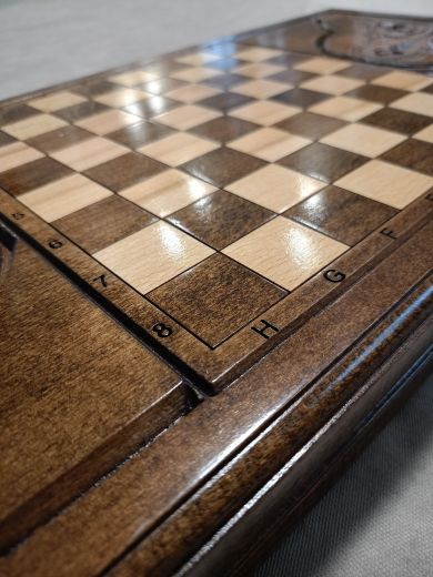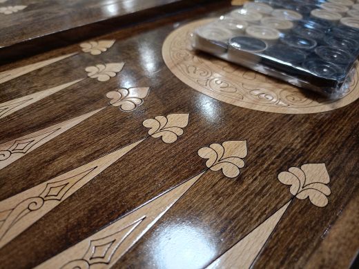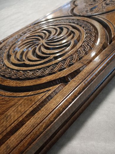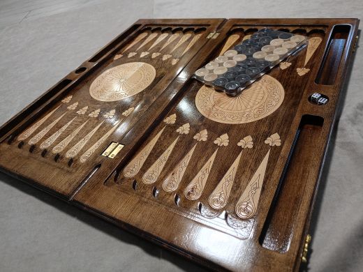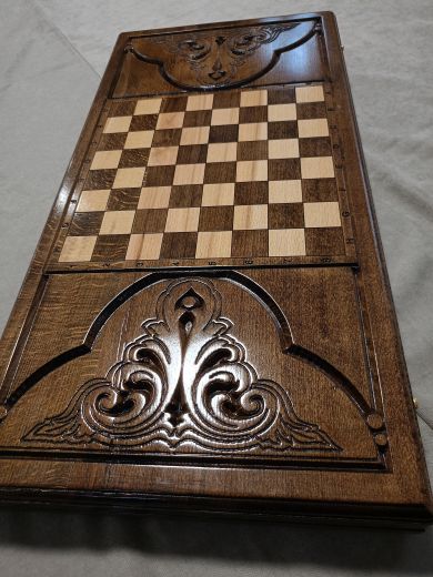Нарды резные "Бесконечность" большие 60 Материал Бук; Упаковка Чехол; Фишки с подложкой Да; Фишек светлых: 16 шт.; Фишек темных: 16 шт.; Кости (шт) 2; Ручка Нет; Исполнение Резные; Размер в закрытом состоянии (Д x Ш x В) (см) 60х31х6; Размер в открытом состоянии (Д x Ш x В) (см) 60х62х3; Ложемент для хранения фишек (лунки) Есть;