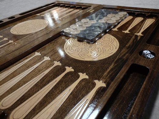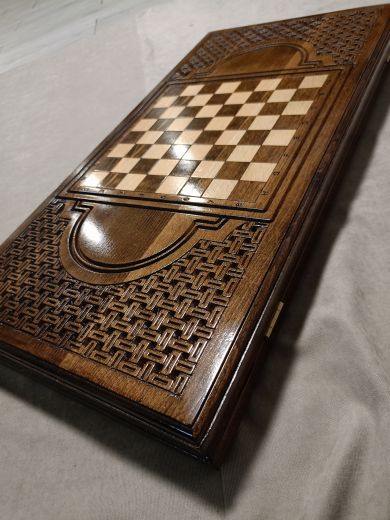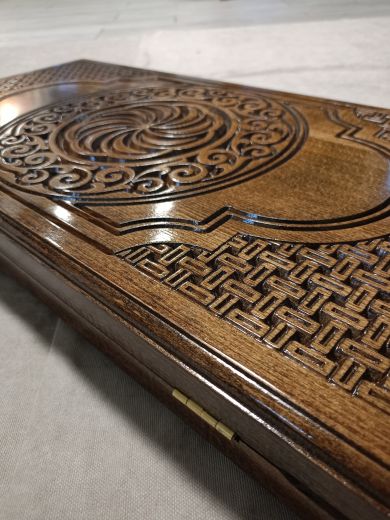 Нарды резные "Бесконечность 2" большие 60 Материал Бук; Упаковка Чехол; Фишки с подложкой Да; Фишек светлых: 16 шт.; Фишек темных: 16 шт.; Кости (шт) 2; Ручка Нет; Исполнение Резные; Размер в закрытом состоянии (Д x Ш x В) (см) 60х31х6; Размер в открытом состоянии (Д x Ш x В) (см) 60х62х3; Ложемент для хранения фишек (лунки) Есть;