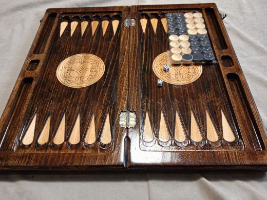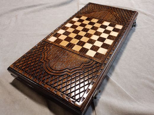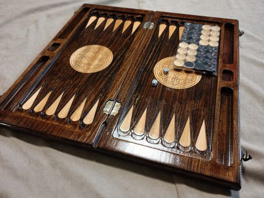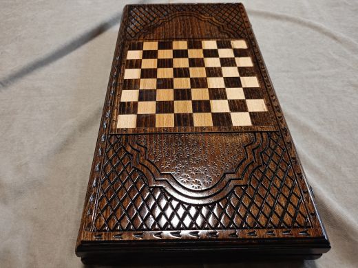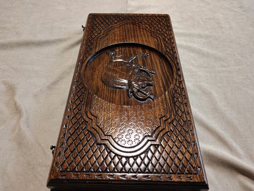 Нарды резные "Буйвол" средние 50 Материал Бук; Упаковка Чехол; Фишки с подложкой Да; Фишек светлых: 16 шт.; Фишек темных: 16 шт.; Кости (шт) 2; Ручка Нет; Исполнение Резные; Размер в закрытом состоянии (Д x Ш x В) (см) 50х25х6,5; Размер в открытом состоянии (Д x Ш x В) (см) 50х50х3; Ложемент для хранения фишек (лунки) Есть;