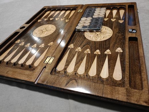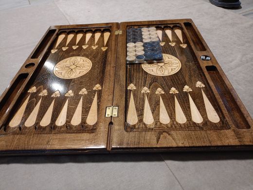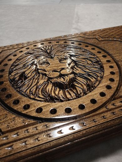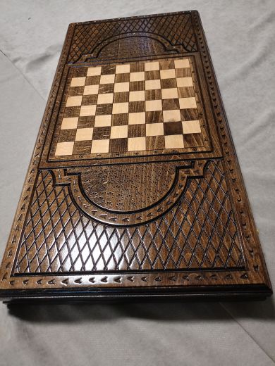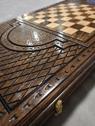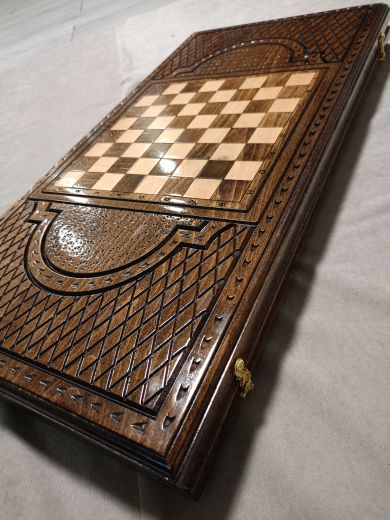Нарды резные "Царь" большие 60 Материал Бук; Упаковка Чехол; Фишки с подложкой Да; Фишек светлых: 16 шт.; Фишек темных: 16 шт.; Кости (шт) 2; Ручка Нет; Исполнение Резные; Размер в закрытом состоянии (Д x Ш x В) (см) 60х31х6; Размер в открытом состоянии (Д x Ш x В) (см) 60х62х3; Ложемент для хранения фишек (лунки) Есть;