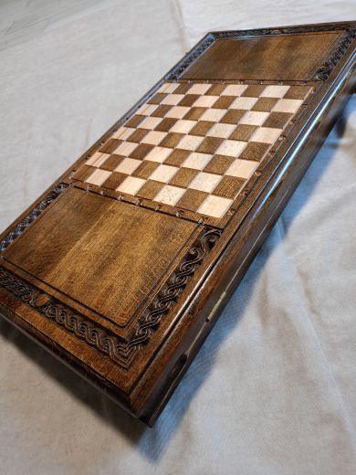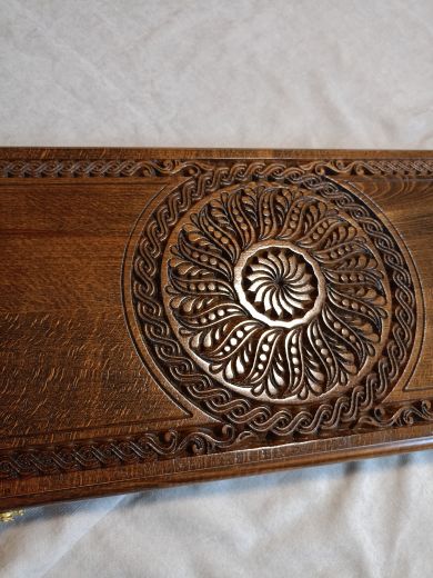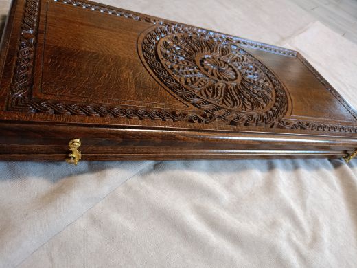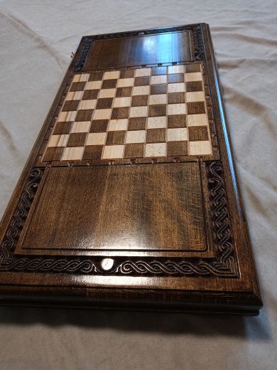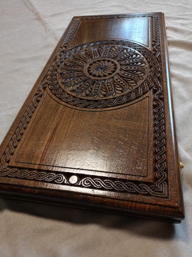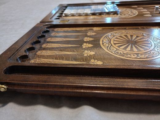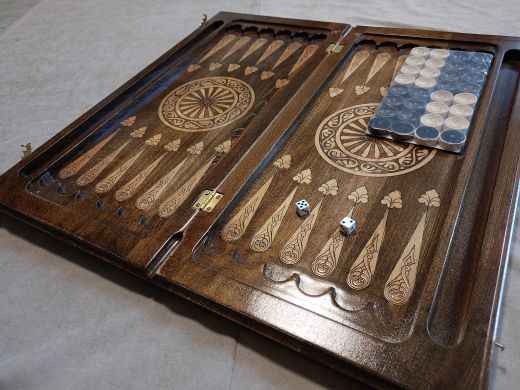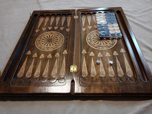 Нарды резные "Цветок" большие 60 Материал Бук; Упаковка Чехол; Фишки с подложкой Да; Фишек светлых: 16 шт.; Фишек темных: 16 шт.; Кости (шт) 2; Ручка Нет; Исполнение Резные; Размер в закрытом состоянии (Д x Ш x В) (см) 60х31х6; Размер в открытом состоянии (Д x Ш x В) (см) 60х62х3; Ложемент для хранения фишек (лунки) Есть;