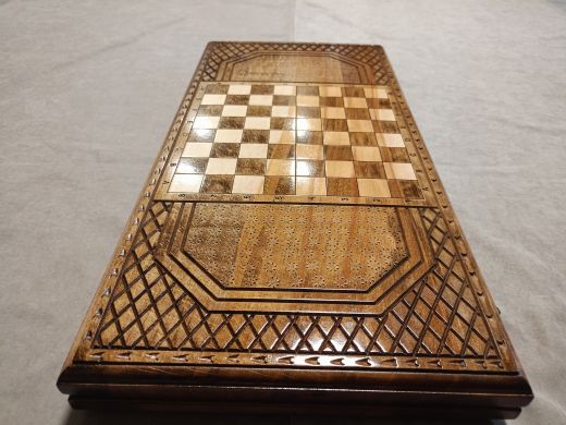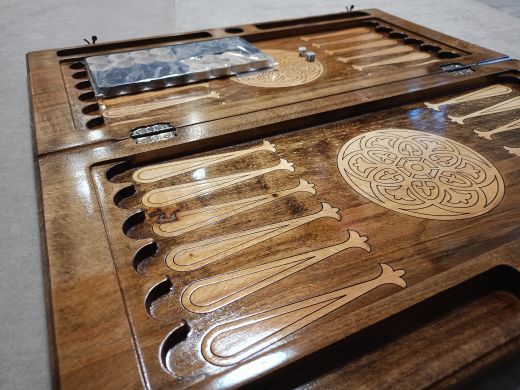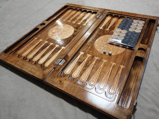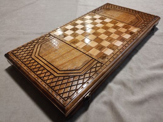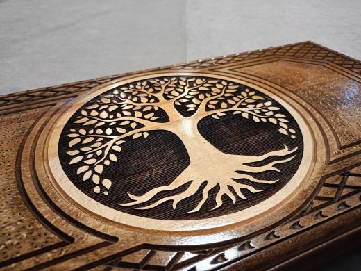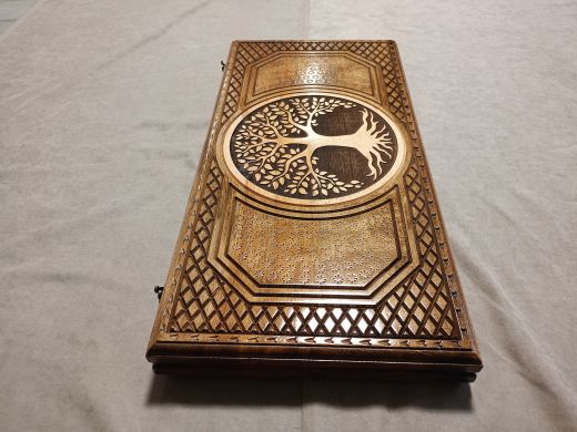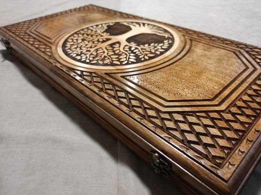 Нарды резные "Дерево жизни" большие 60 Материал Бук; Упаковка Чехол; Фишки с подложкой Да; Фишек светлых: 16 шт.; Фишек темных: 16 шт.; Кости (шт) 2; Ручка Нет; Исполнение Резные; Размер в закрытом состоянии (Д x Ш x В) (см) 60х31х6; Размер в открытом состоянии (Д x Ш x В) (см) 60х62х3; Ложемент для хранения фишек (лунки) Есть;