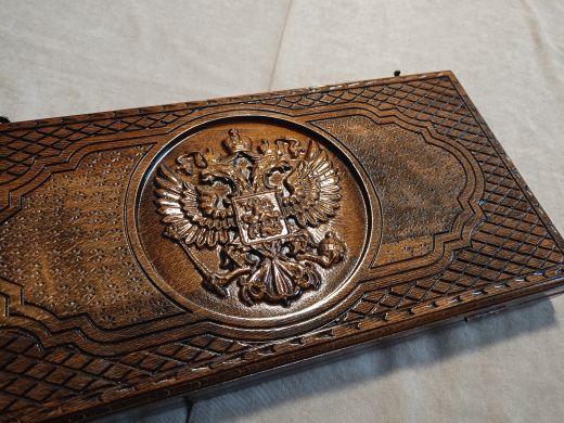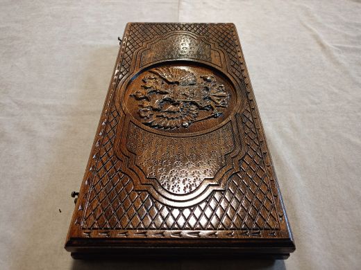 Нарды резные "Держава" средние 50 Материал Бук; Упаковка Чехол; Фишки с подложкой Да; Фишек светлых: 16 шт.; Фишек темных: 16 шт.; Кости (шт) 2; Ручка Нет; Исполнение Резные; Размер в закрытом состоянии (Д x Ш x В) (см) 50х25х6,5; Размер в открытом состоянии (Д x Ш x В) (см) 50х50х3; Ложемент для хранения фишек (лунки) Есть; Большой выбор шахмат и нард. ВСЁ В НАЛИЧИИ, ЗВОНИТЕ!