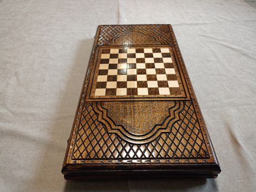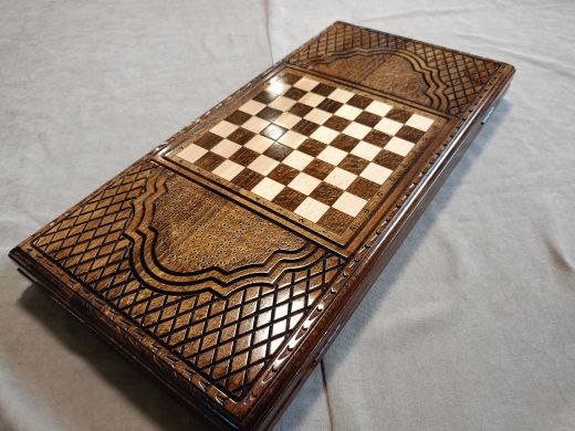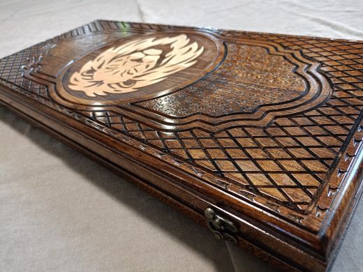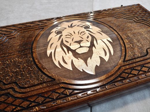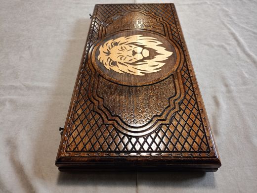 Нарды резные "Голова льва" большие 60 Материал Бук; Упаковка Чехол; Фишки с подложкой Да; Фишек светлых: 16 шт.; Фишек темных: 16 шт.; Кости (шт) 2; Ручка Нет; Исполнение Резные; Размер в закрытом состоянии (Д x Ш x В) (см) 60х31х6; Размер в открытом состоянии (Д x Ш x В) (см) 60х62х3; Ложемент для хранения фишек (лунки) Есть; Большой выбор шахмат и нард. ВСЁ В НАЛИЧИИ, ЗВОНИТЕ!