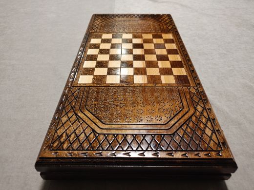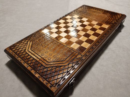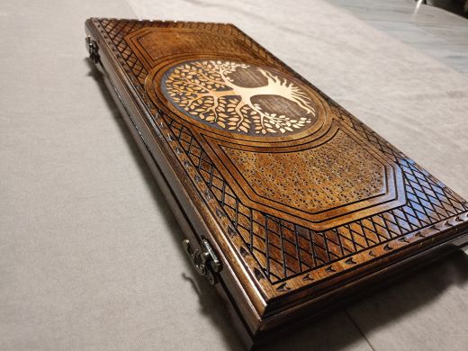 Нарды резные "Дерево жизни" средние 50 Материал Бук; Упаковка Чехол; Фишки с подложкой Да; Фишек светлых: 16 шт.; Фишек темных: 16 шт.; Кости (шт) 2; Ручка Нет; Исполнение Резные; Размер в закрытом состоянии (Д x Ш x В) (см) 50х25х6,5; Размер в открытом состоянии (Д x Ш x В) (см) 50х50х3; Ложемент для хранения фишек (лунки) Есть; Большой выбор шахмат и нард. ВСЁ В НАЛИЧИИ, ЗВОНИТЕ!