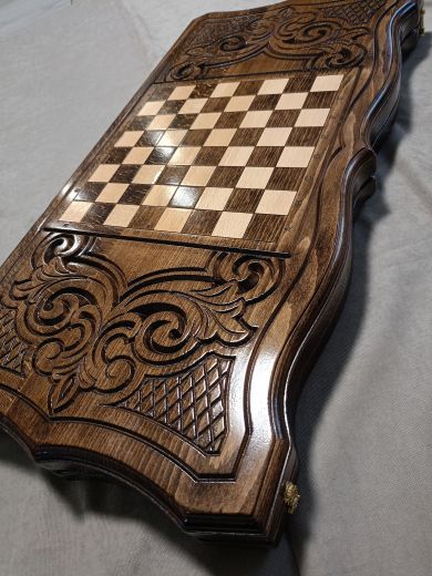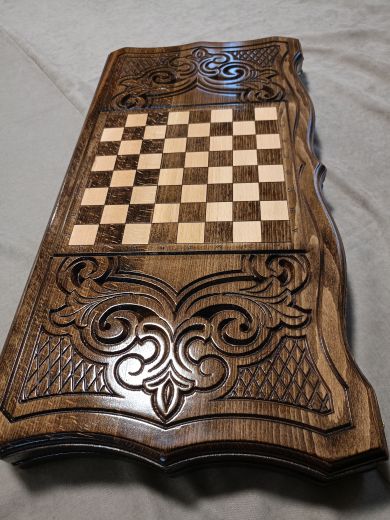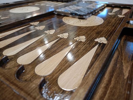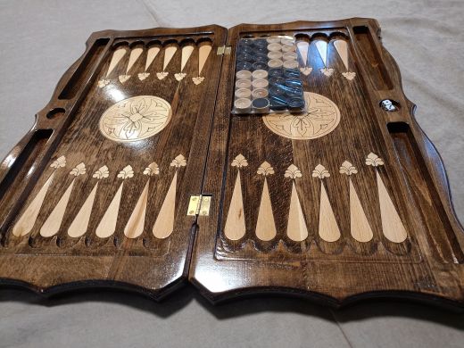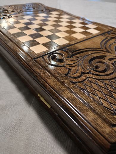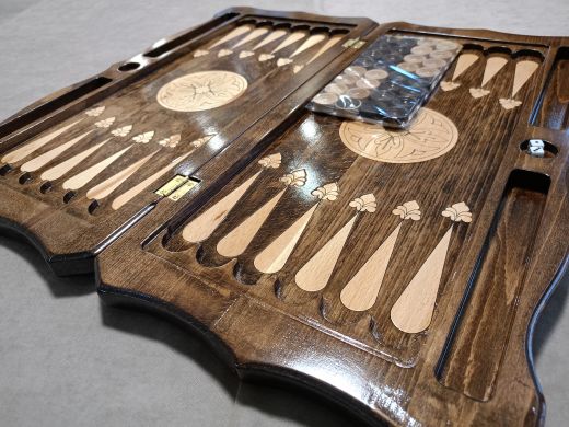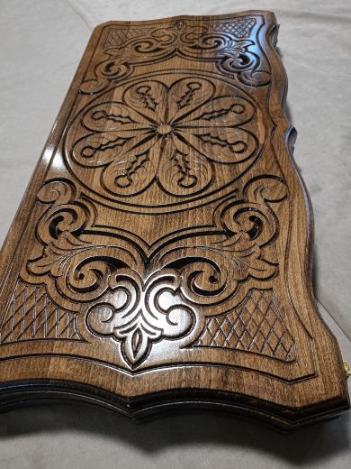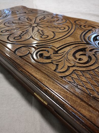 Нарды резные "Лепестки" большие 60 Материал Бук; Упаковка Чехол; Фишки с подложкой Да; Фишек светлых: 16 шт.; Фишек темных: 16 шт.; Кости (шт) 2; Ручка Нет; Исполнение Резные; Размер в закрытом состоянии (Д x Ш x В) (см) 60х31х6; Размер в открытом состоянии (Д x Ш x В) (см) 60х62х3; Ложемент для хранения фишек (лунки) Есть;