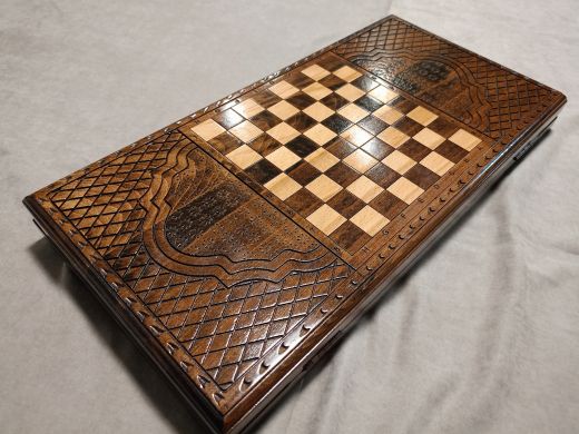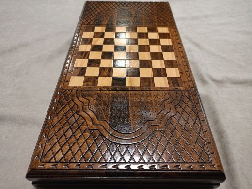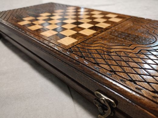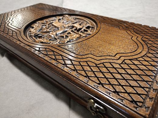 Нарды резные "Лесная семья" средние 50 Материал Бук; Упаковка Чехол; Фишки с подложкой Да; Фишек светлых: 16 шт.; Фишек темных: 16 шт.; Кости (шт) 2; Ручка Нет; Исполнение Резные; Размер в закрытом состоянии (Д x Ш x В) (см) 50х25х6,5; Размер в открытом состоянии (Д x Ш x В) (см) 50х50х3; Ложемент для хранения фишек (лунки) Есть; Большой выбор шахмат и нард. ВСЁ В НАЛИЧИИ, ЗВОНИТЕ!