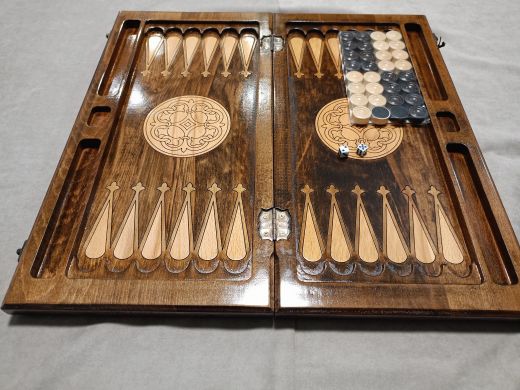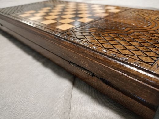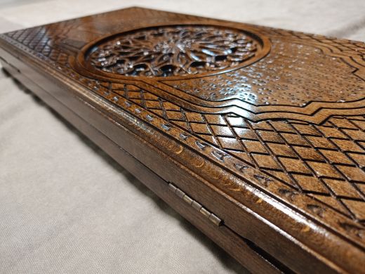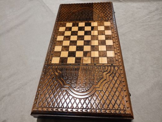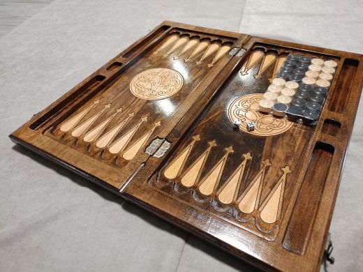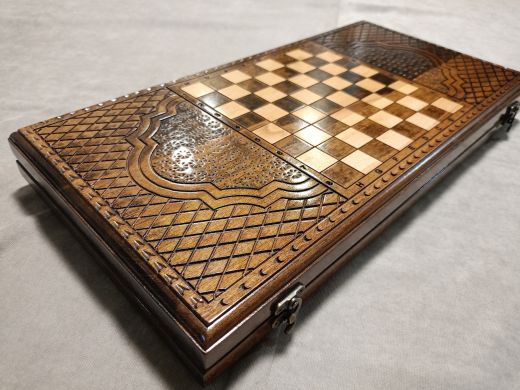 Нарды резные "Сияние 2" средние 50 Материал Бук; Упаковка Чехол; Фишки с подложкой Да; Фишек светлых: 16 шт.; Фишек темных: 16 шт.; Кости (шт) 2; Ручка Нет; Исполнение Резные; Размер в закрытом состоянии (Д x Ш x В) (см) 50х25х6,5; Размер в открытом состоянии (Д x Ш x В) (см) 50х50х3; Ложемент для хранения фишек (лунки) Есть; Большой выбор шахмат и нард. ВСЁ В НАЛИЧИИ, ЗВОНИТЕ!