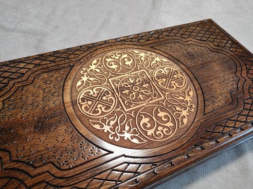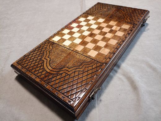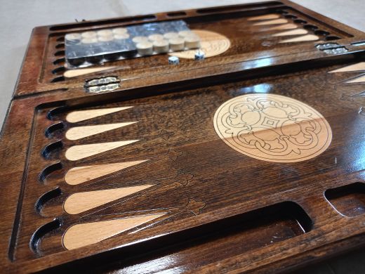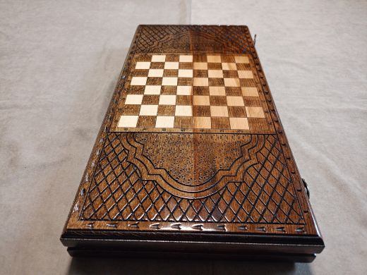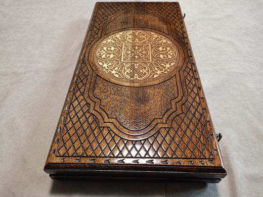 Нарды резные "Украшение" средние 50 Материал Бук; Упаковка Чехол; Фишки с подложкой Да; Фишек светлых: 16 шт.; Фишек темных: 16 шт.; Кости (шт) 2; Ручка Нет; Исполнение Резные; Размер в закрытом состоянии (Д x Ш x В) (см) 50х25х6,5; Размер в открытом состоянии (Д x Ш x В) (см) 50х50х3; Ложемент для хранения фишек (лунки) Есть; Большой выбор шахмат и нард. ВСЁ В НАЛИЧИИ, ЗВОНИТЕ!
