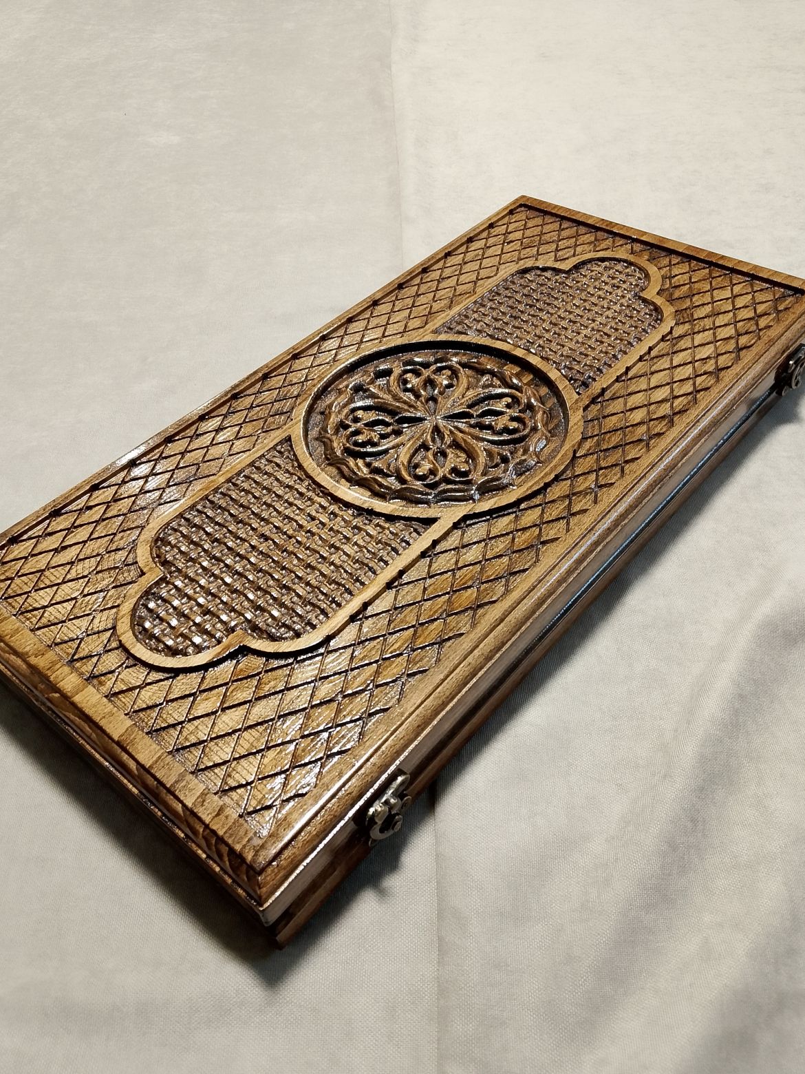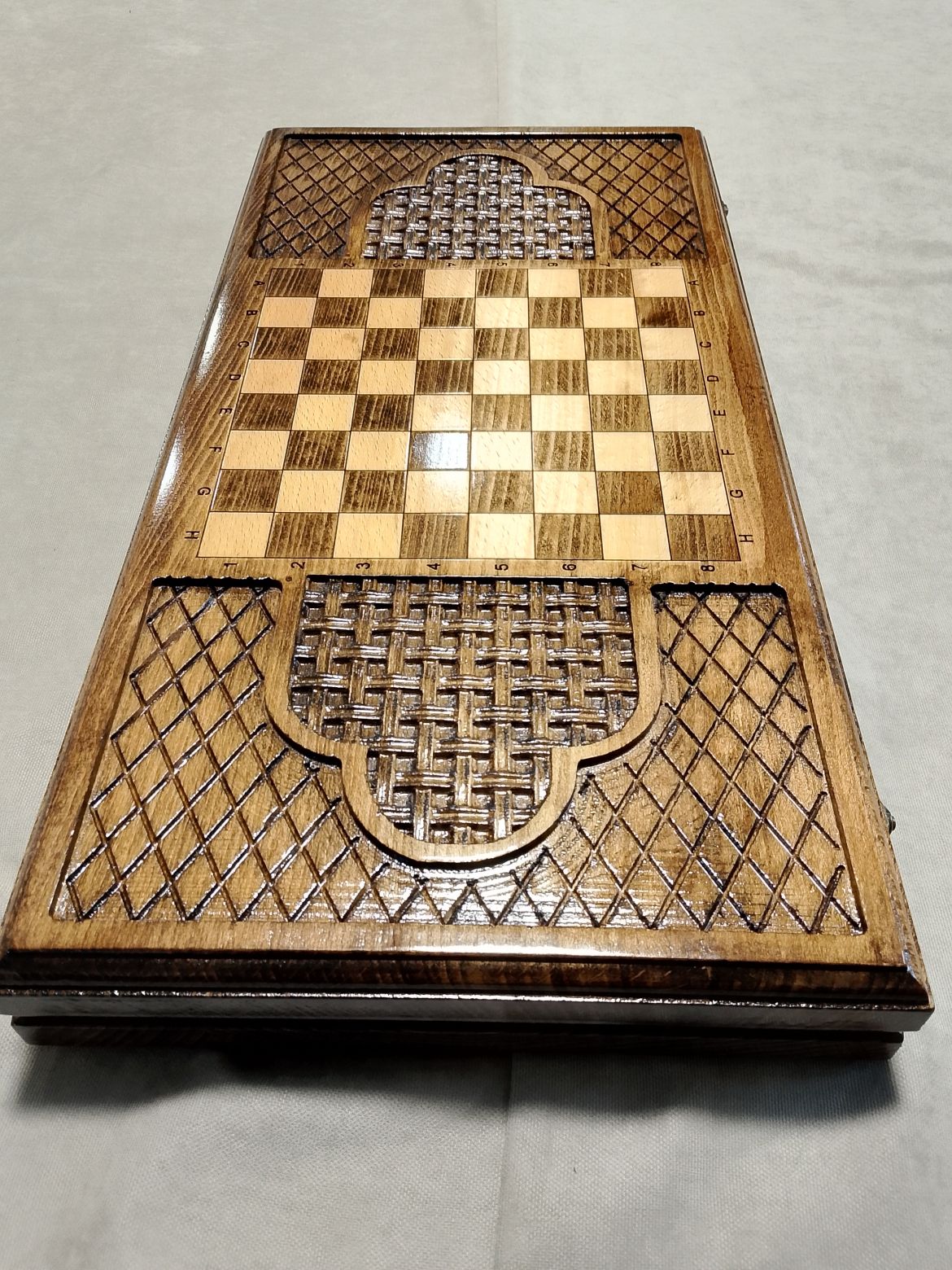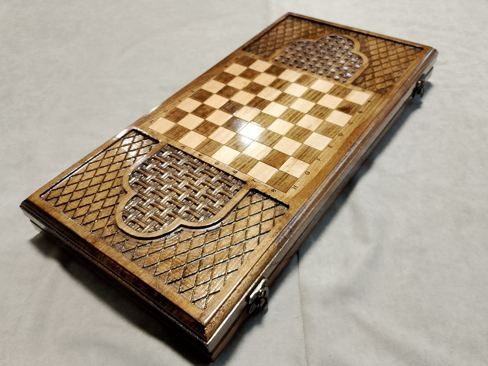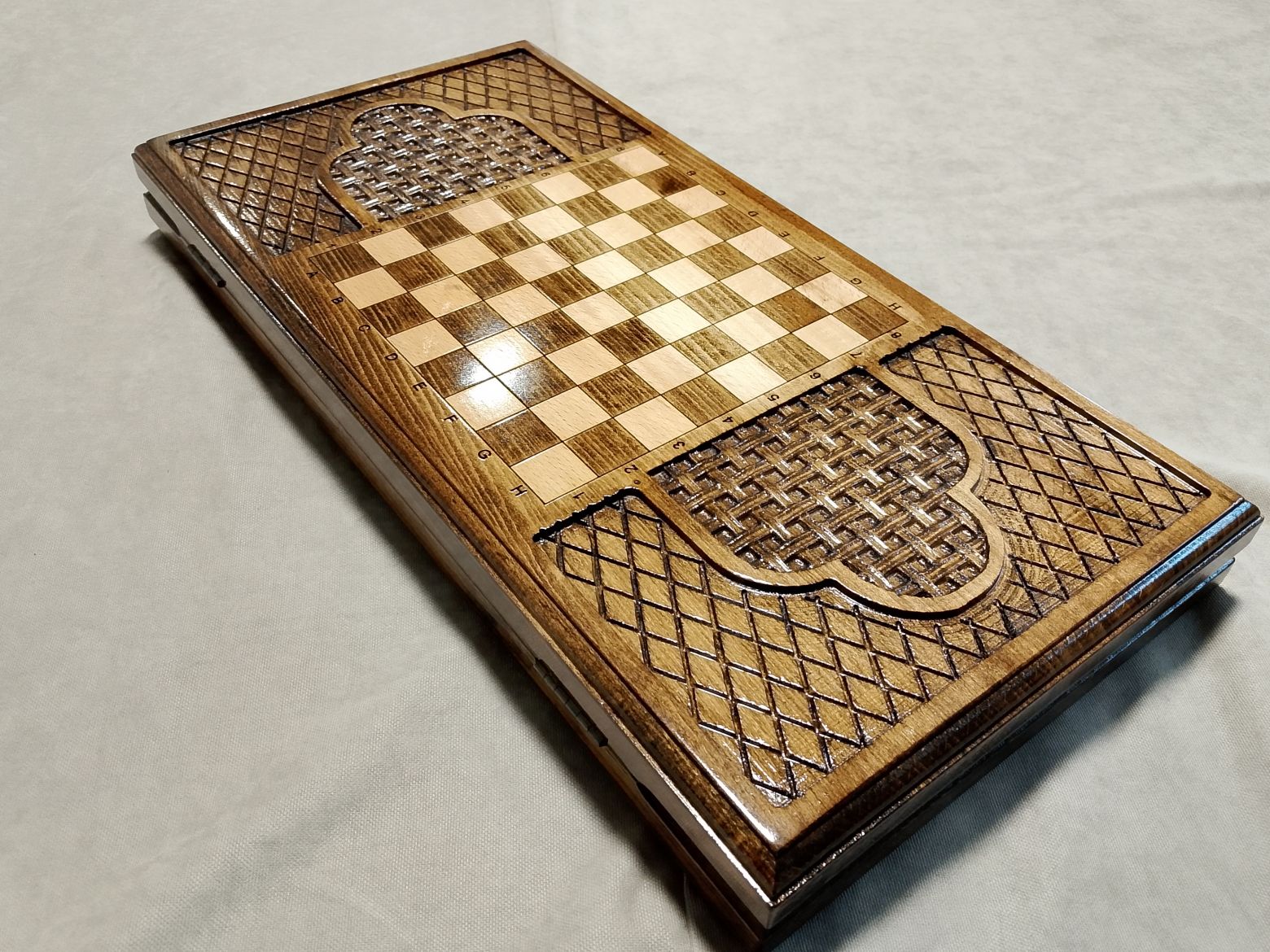 Нарды резные "Узор" средние 50 Материал Бук; Упаковка Чехол; Фишки с подложкой Да; Фишек светлых: 16 шт.; Фишек темных: 16 шт.; Кости (шт) 2; Ручка Нет; Исполнение Резные; Размер в закрытом состоянии (Д x Ш x В) (см) 50х25х6,5; Размер в открытом состоянии (Д x Ш x В) (см) 50х50х3; Ложемент для хранения фишек (лунки) Есть; Большой выбор шахмат и нард. ВСЁ В НАЛИЧИИ, ЗВОНИТЕ!