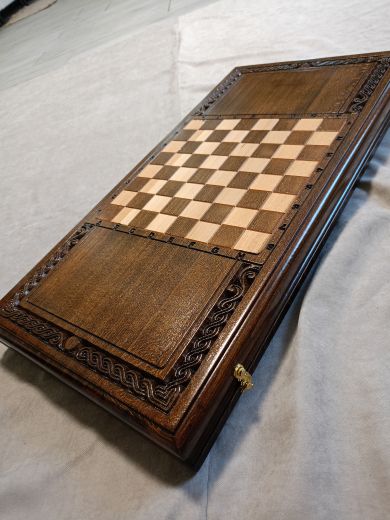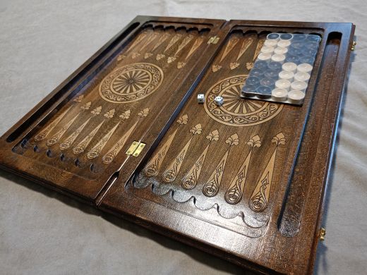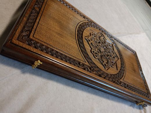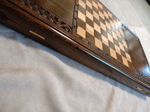 Нарды резные "Восьмигранник" большие 60 Материал Бук; Упаковка Чехол; Фишки с подложкой Да; Фишек светлых: 16 шт.; Фишек темных: 16 шт.; Кости (шт) 2; Ручка Нет; Исполнение Резные; Размер в закрытом состоянии (Д x Ш x В) (см) 60х31х6; Размер в открытом состоянии (Д x Ш x В) (см) 60х62х3; Ложемент для хранения фишек (лунки) Есть;