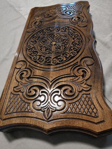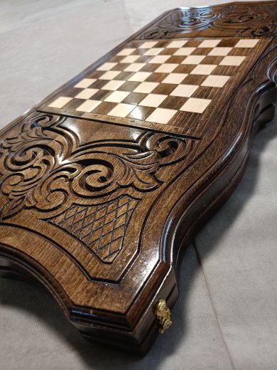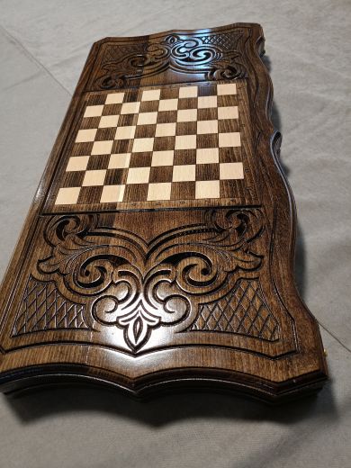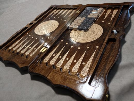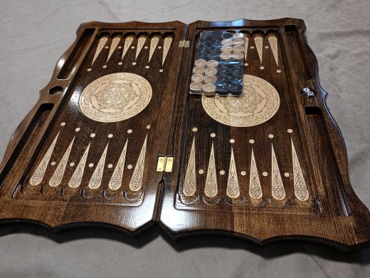 Нарды резные "Звезда" большие 60 Материал Бук; Упаковка Чехол; Фишки с подложкой Да; Фишек светлых: 16 шт.; Фишек темных: 16 шт.; Кости (шт) 2; Ручка Нет; Исполнение Резные; Размер в закрытом состоянии (Д x Ш x В) (см) 60х31х6; Размер в открытом состоянии (Д x Ш x В) (см) 60х62х3; Ложемент для хранения фишек (лунки) Есть;