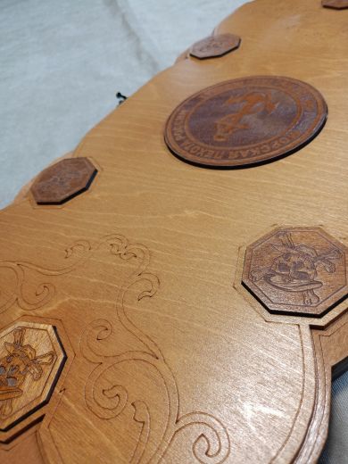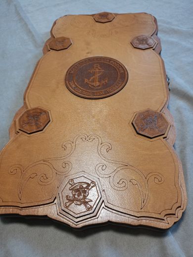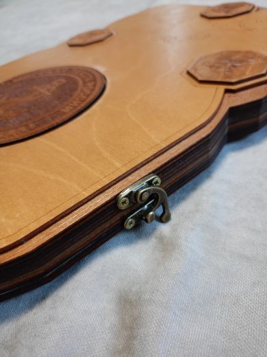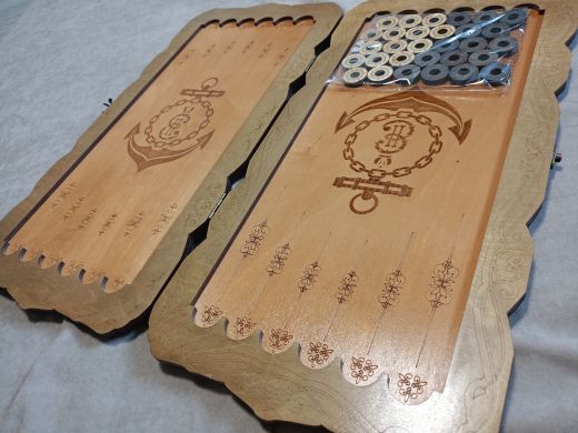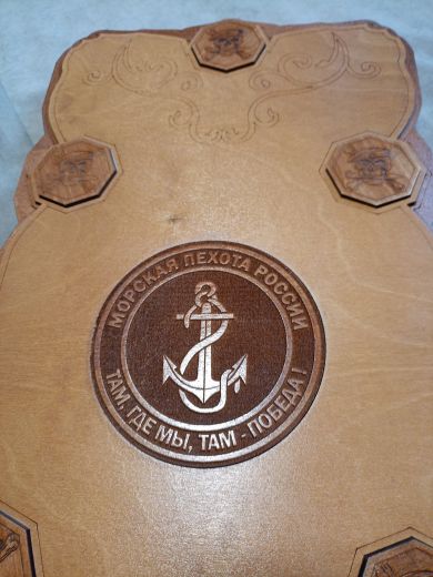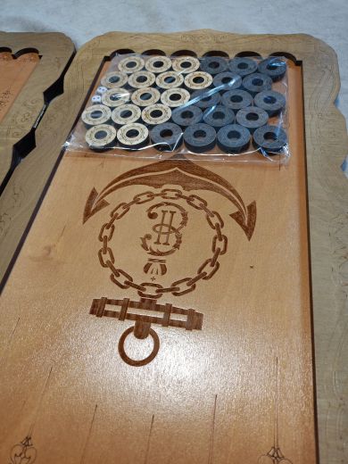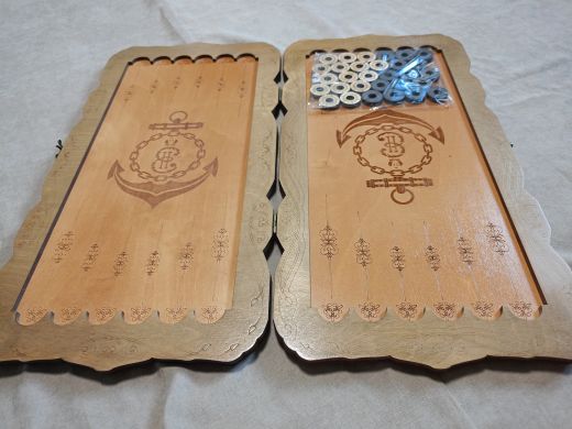 Нарды большие резные "Морская пехота", ручной сборки. Деревянные нарды выполнены из березы высочайшего качества и покрыты износостойким лаком в три слоя! Это обеспечивает прочность и устойчивость к негативному влиянию внешней среды, соответственно, и продолжительный срок эксплуатации. В комплекте с резными нардами идут КУБИКИ и ФИШКИ (30шт), имеющие ОТВЕРСТИЕ, благодаря которому их удобно перемещать, а БАРХАТНОЕ покрытие, обеспечивает идеальное скольжение по площади игровой зоны. Нарды имеют прочную защелку с курковым механизмом - случайное открытие исключено! Размер нард: 57*29*4 см