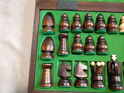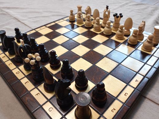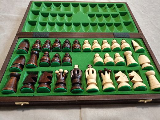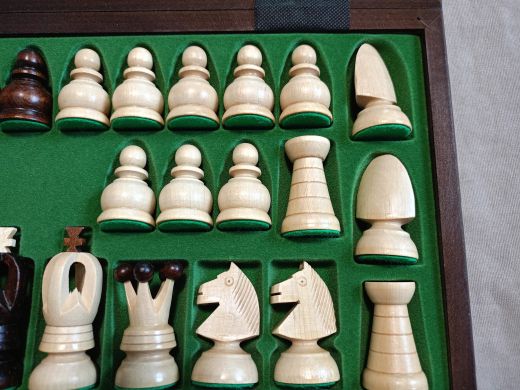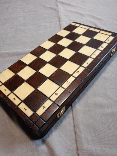 Характеристики: Производитель MADON-CHESS (Польша) Размер шахматной доски в сложенном виде:: 44x22x6 см Размер доски в разложенном виде: 44x44 см Высота короля: 7,5 см Высота пешки: 4 см. Вес: 1,5 кг Фигуры утяжеленные с войлочным основанием. Дерево, используемое для шахматной доски: бук, береза Дерево, используемая для шахматных фигур: граб, платана Тип доски: складная