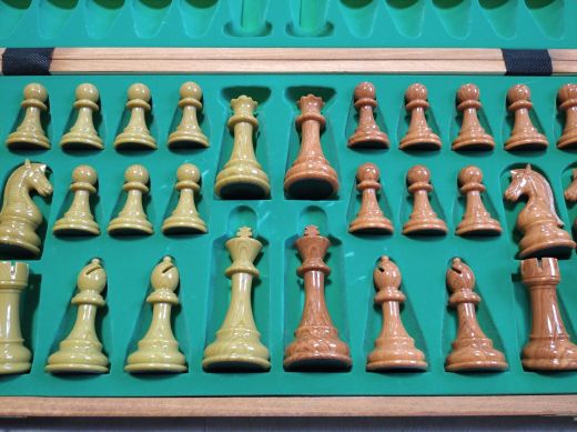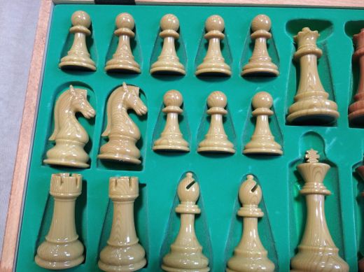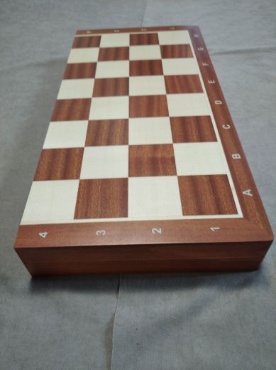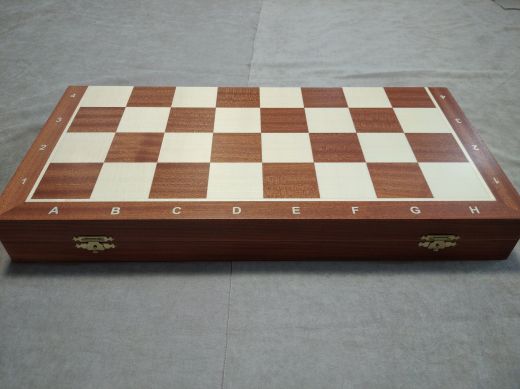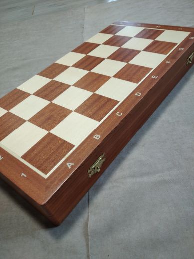 Доска складная шахматная деревянная большого размера. Выполнена в классическом стиле. Со всех сторон от игрового поля, на доску нанесена шахматная нотация. Размер клеток соответствует стандартам ФИДЕ. Внутри доски ячейки для хранения фигур — для каждой фигуры отдельная ячейка. Сбоку доски — два железных замочка, которые предотвращают произвольное раскрытие. Размер доски — 52x52 см., размер клетки — 5.7x5.7 см. Сделано в Европе (Польша). 2. Фигуры шахматные из композита Стаунтон №8, представленные вашему вниманию сразу привлекают своим эстетически совершенным внешним видом. Фигуры имеют полноценный утяжелитель и очень удобны на практике, поэтому они непременно придутся по душе всем без исключения любителям шахмат вне зависимости от возраста и уровня игры. Кроме того, фигуры данного комплекта идеально подходят для всех шахматных досок со стандартным размером клетки от 50 х 50 мм. Фигуры комплекта окрашены в светло-коричневый и горчичный цвета. Высота Короля - 98 мм. Диаметр: 42 мм. Высота Ферзя - 85 мм. Диаметр: 39 мм. Высота Ладьи - 67 мм. Диаметр: 36 мм. Высота Слона - 74 мм. Диаметр: 37 мм. Высота Коня - 68 мм Диаметр: 36 мм. Высота Пешки - 52 мм. Диаметр: 32 мм. Вес комплекта (ДОСКА С ФИГУРАМИ) - 3,05 кг.