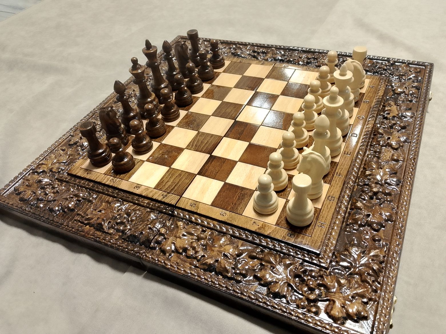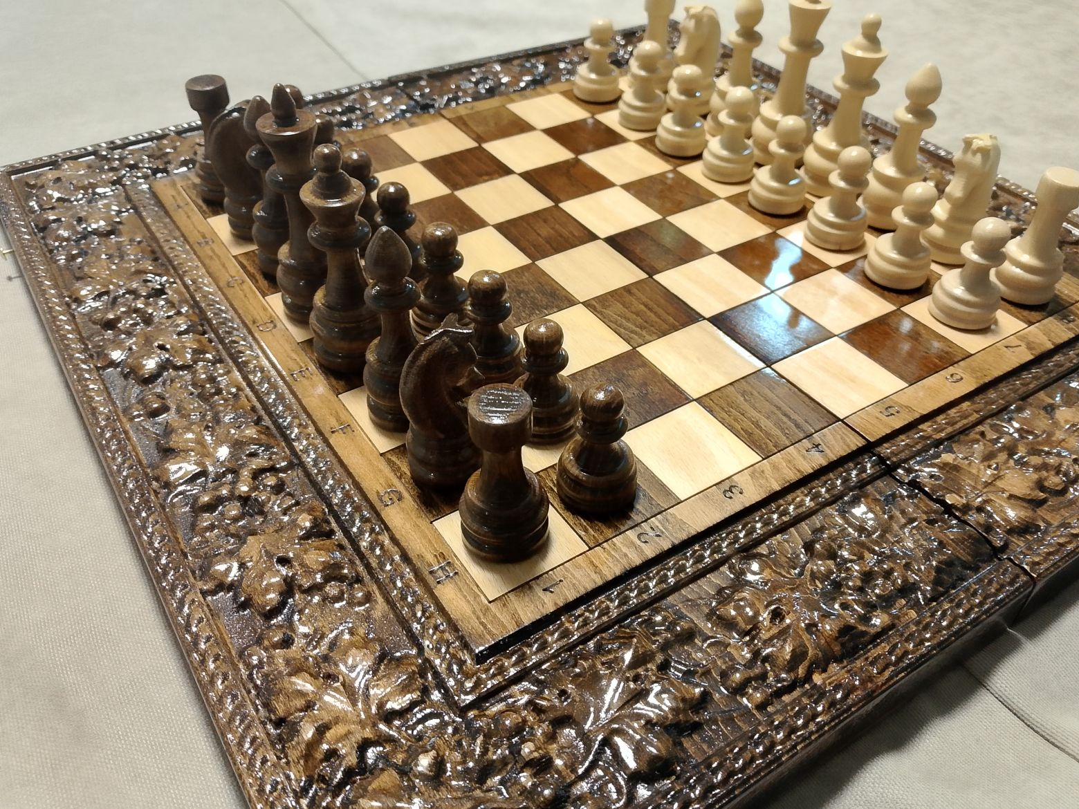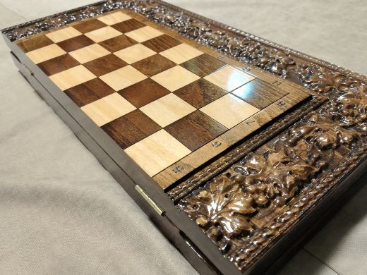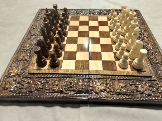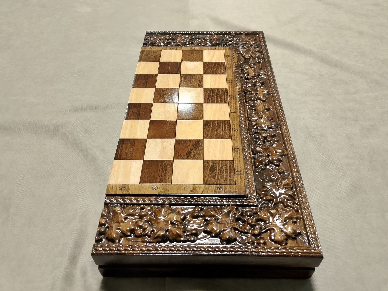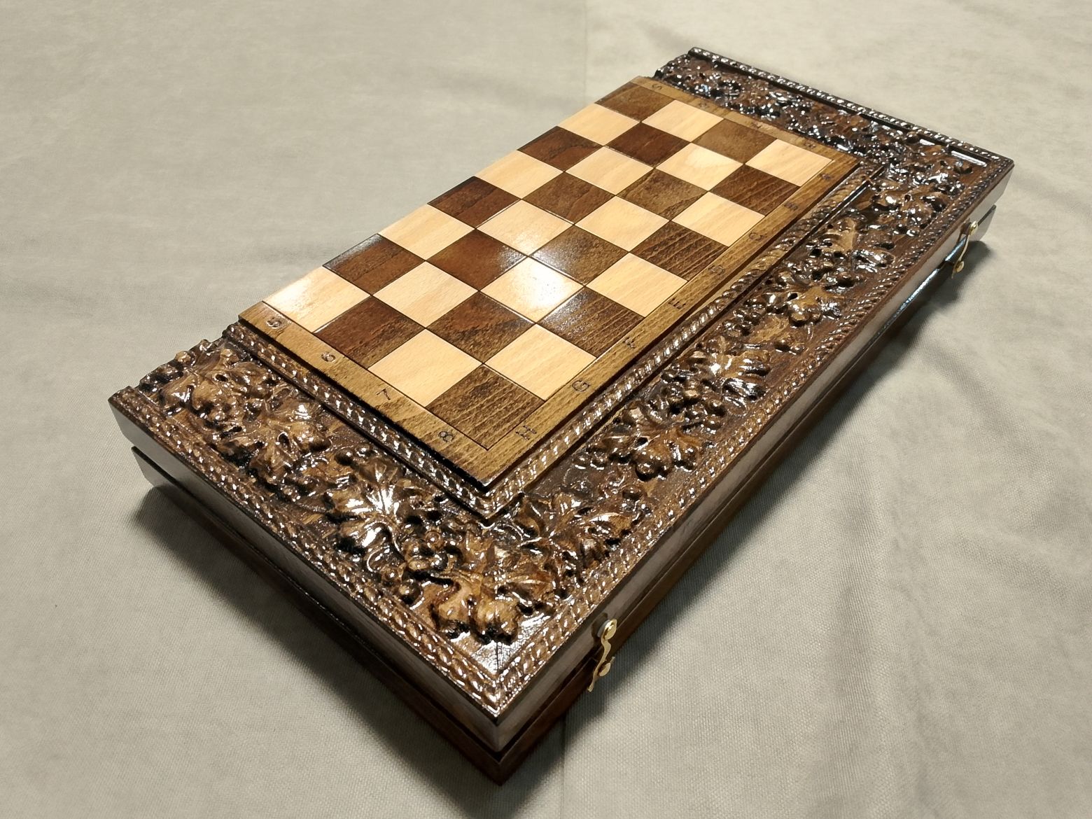 Шахматы + нарды резные «Виноград» 40 Тип Нарды + шахматы + шашки 3 в 1 Материал Фигур дерево (бук) Высота Пешки (см) 3,2 Высота Короля (см) 6,2 Размеры (ДxШxВ) 40х20х6 Большой выбор шахмат и нард. ВСЁ В НАЛИЧИИ, ЗВОНИТЕ!
