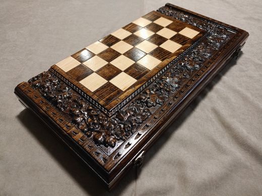 Шахматы + нарды резные «Виноград» 50 Тип Нарды + шахматы + шашки 3 в 1 Материал Фигур дерево (бук) Высота Пешки (см) 4,5 Высота Короля (см) 8,7 Размер Клетки 4 Размеры (ДxШxВ) 50х25х6 Большой выбор шахмат и нард. ВСЁ В НАЛИЧИИ, ЗВОНИТЕ!