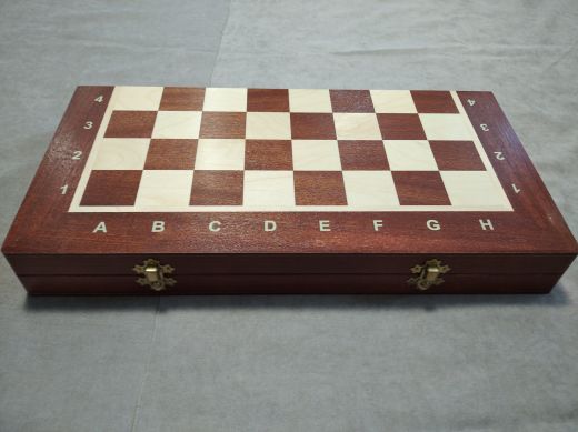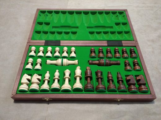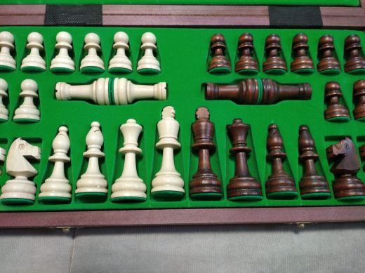 Шахматы "Турнирные № 4". Фигуры выполнены из бука. Высота короля, см – 9. Высота пешки, см – 4,5.Диаметр основания короля, см – 3.5. Диаметр основания пешки, см – 2.5. Цвет темных фигур - тёмно-коричневый.Цвет светлых фигур - светло-жёлтый. Утяжелитель - Металлический, внутри. Верхнее покрытие - Матовый лак.Основание – Войлок. Размер доски в разложенном виде (Д x Ш x В), см - 48 х 48 х 5. Размер клетки (Д x Ш), см - 5 х 5. Цвет чёрных клеток - Тёмно-коричневый.Цвет белых клеток - Кремово-белый. Место для фигур - Отдельная ячейка для каждой фигуры. Вес 2 кг.