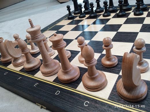 Деревянные шахматы Модерн с фигурами из без утяжеления для домашнего использования, школьных занятий и обучения. Шахматные фигуры изготовлены из массива бука. Размер шахматной доски 50 х 50см. Размер клетки 50мм. Высота короля 105 мм, основание 45 мм. Высота пешки 52 мм, основание 30 мм.
